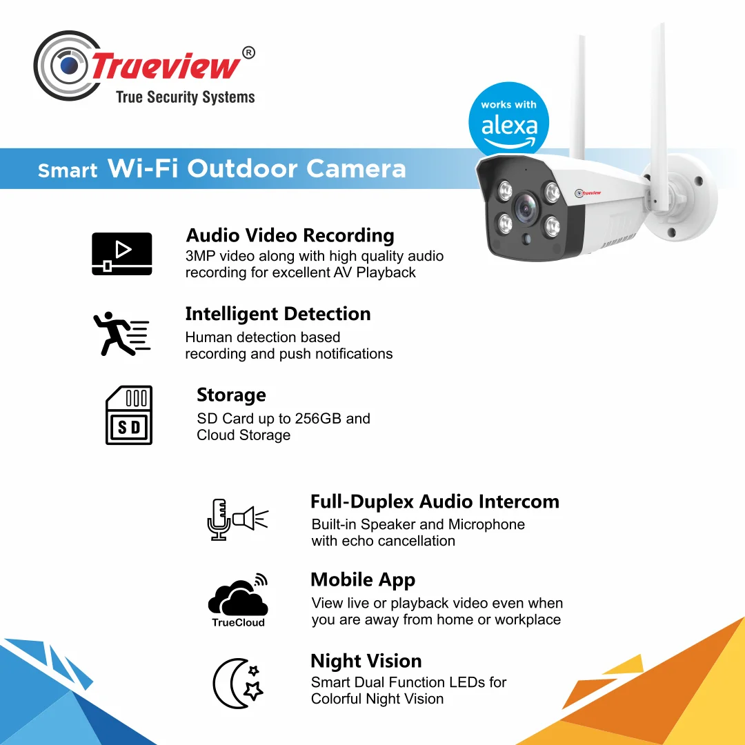 Create the most secure environment for your spaces with Trueview 3MP HD Smart Wi-Fi ATC Bullet Camera!